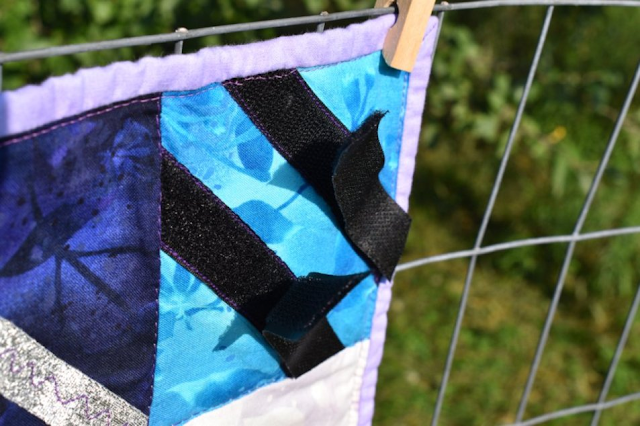 I love making quilts. It's easy sewing. All straight seams. Any other kind of sewing stresses me out! So for this quilt I had to stretch my sewing comfort zone. I learned to sew a pocket, velcro, and a zipper! Things I would have never tried had it not been for my great desire to quilt. I'm still not going to be a seamstress by any means but at least I can say I've sewn a zipper.